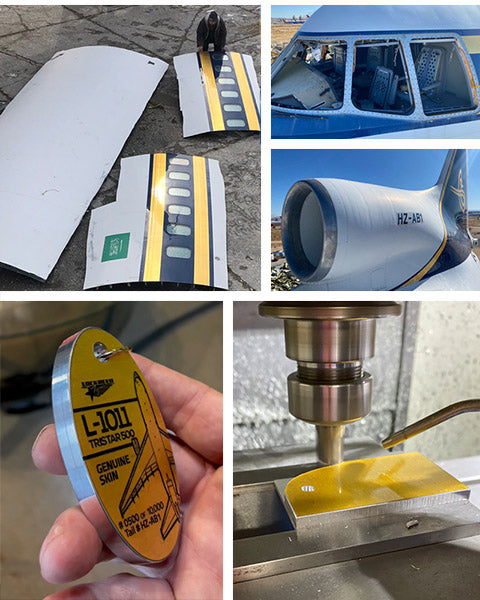 MotoArt’s L-1011 Tristar PlaneTags not only continue the legacy of these iconic aircraft, but also give the opportunity to own a piece of fuselage covered in authentic 23k gold leaf. Lockheed’s only commercial jet, our L-1011 spent its life with Arabic royalty.