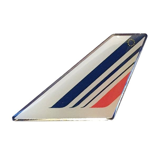 Metal pin badge with enamel coating. This tail design shape features the Air France tail livery. All pin badges come with pin and clasp on reverse