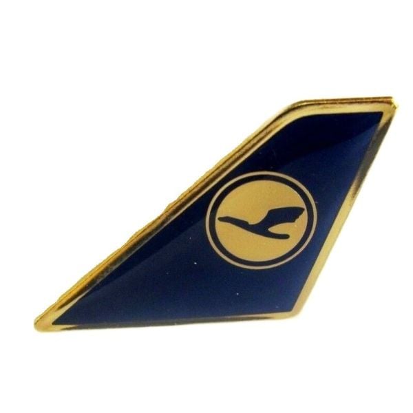 Metal pin badge with enamel coating. This tail design shape features the Lufthansa tail livery. All pin badges come with pin and clasp on reverse