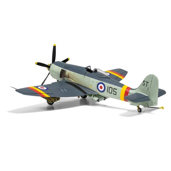 This remarkable 1:48 scale model of the Hawker Sea Fury FB.11 showcases one of the finest piston-engine fighter aircraft ever built. Comprising 122 parts and rated at skill level 2, this kit provides an engaging project for modellers aged 8 and up. Once assembled, the model spans 243mm and offers three distinct paint schemes, enabling you to depict this iconic aircraft in its various roles, from Fleet Air Arm service to air racing triumphs.