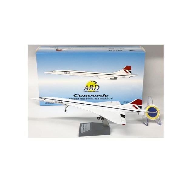 This is the licensed diecast model in the scale of 1:200 from ARD of the British Airways Concorde - G-BOAE in the Negus Livery. This accurate premium model with landing gear and stand is supplied in a premium box making it an ideal gift as well as a great addition for collectors.