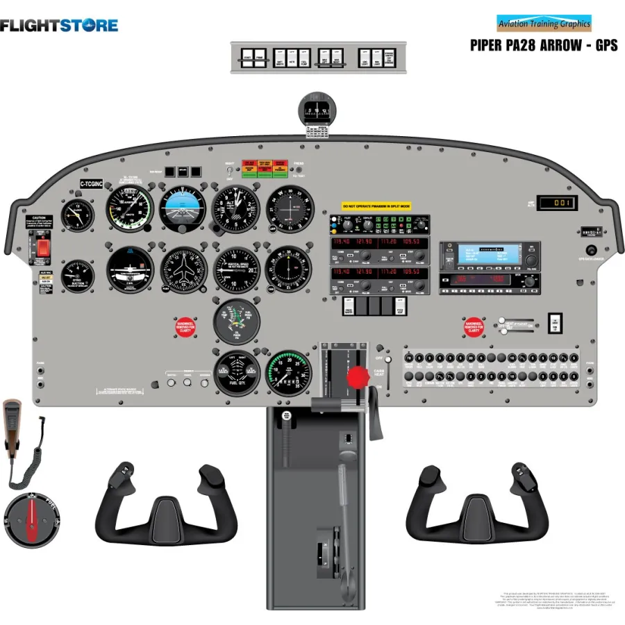 This Piper PA-28 Arrow GPS cockpit training poster, size 24" x 20" is supplied rolled and replicates the exact layout of the cockpit in superb detail on heavy duty brilliant white paper.