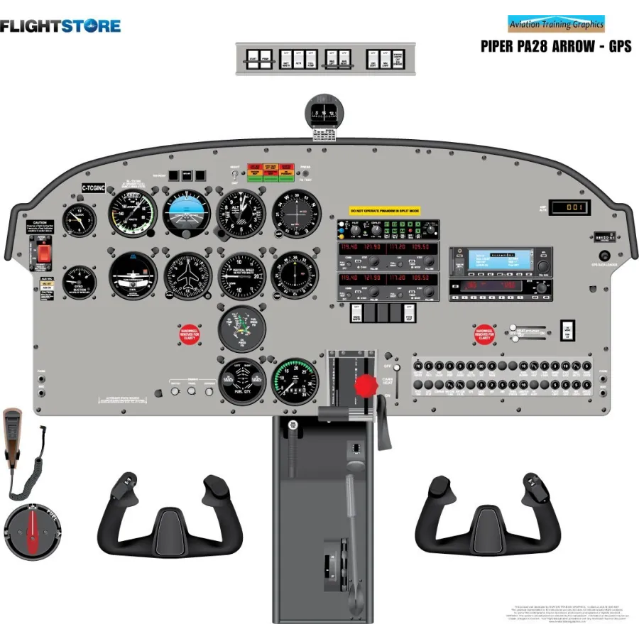 This Piper PA-28 Arrow GPS cockpit training poster, size 24" x 20" is supplied rolled and replicates the exact layout of the cockpit in superb detail on heavy duty brilliant white paper.