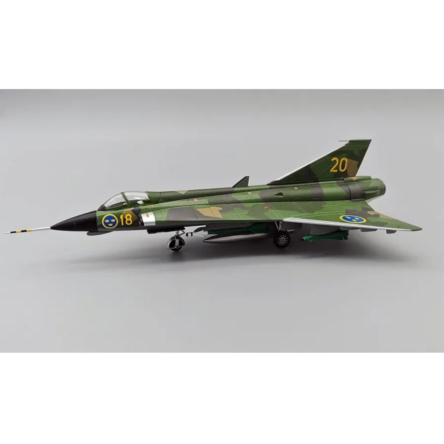 This is a 1/72 scale diecast scale model of the Saab Draken J35J Swedish Air Force Splinter Scheme,