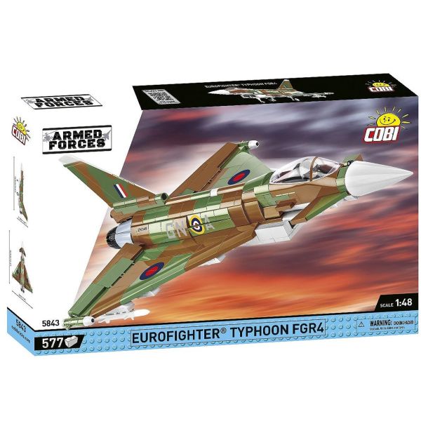 With 577 top-quality COBI construction blocks you can build a multi-purpose EUROFIGHTER TYPHOON FGR4 fighter of your own. The set has been carefully designed in a 1:48 scale and features an opening cockpit, movable ailerons and wheels. The landing gear can be easily detached at any time to display the aircraft on the display stand, which is included in the set. A nameplate is also included. Thanks to the intuitive instructions, the construction is simple and will not cause problems for less advanced builders. The blocks have high-quality prints that do not wear off even during intensive use, as well. The set will also meet the expectations of aviation, military and block enthusiasts. The Eurofighter looks great in your collection, no matter how old you are!