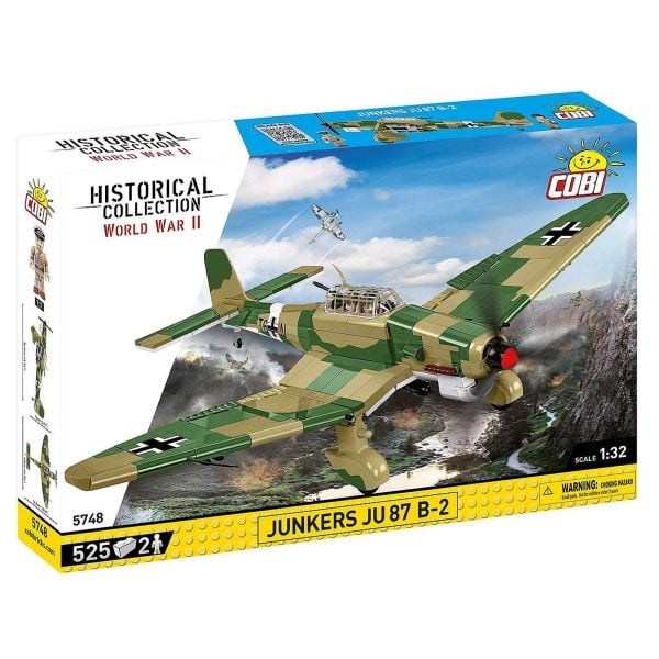 pin, with which you can display the plane "in flight". The set is also complemented by a plate with the name of the plane. The JU 87 B-2 in tropical camouflage is a perfect addition to the WWII aircraft collection! The set will delight not only young history enthusiasts, but even adult collectors and fans of military technology. Build history, piece by piece, with COBI!