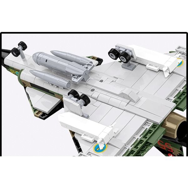 The aircraft that served as the model for the COBI model is located at the Flygvapenmuseum in Linköping, the Swedish Air Force Museum. The ghost symbol visible on the model is the emblem of the Johan Röd (Red John) squadron of the Swedish Air Force, which operated Viggen fighter jets. The symbol depicts a white ghost, and the squadron's motto: "The Show Must Go On," also often appeared on their aircraft.