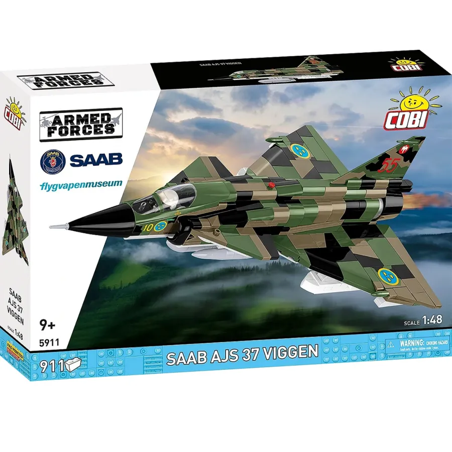 Build a model of the Saab AJS37 Viggen fighter jet, a legendary aircraft that defended the Scandinavian skies for decades.