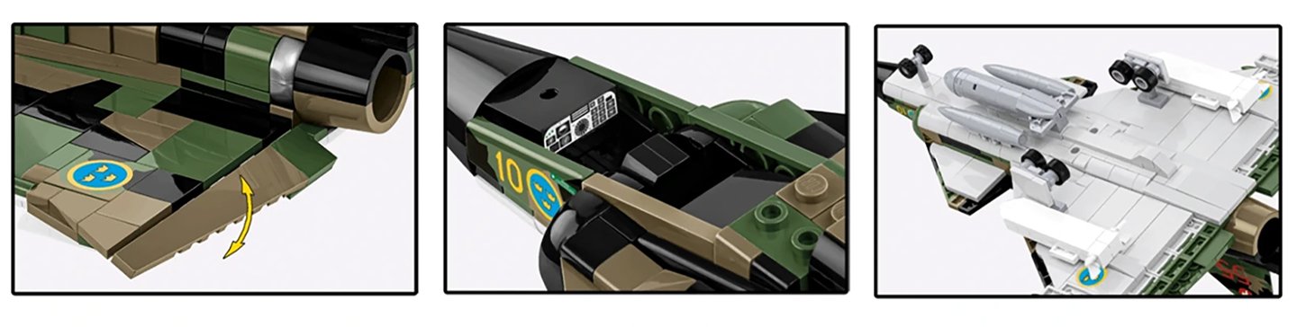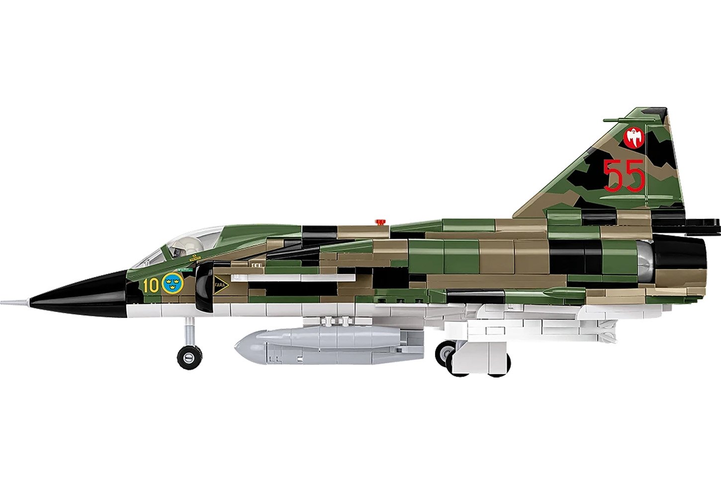 911 blocks - The set contains high-quality elements that allow for a precise reproduction of the Viggen's "canard" design, from the characteristic wings and cockpit equipment to realistic armament.
