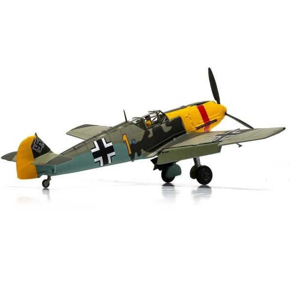 This magnificent 1:72 scale Messerschmitt Me109E-4/B is a perfect replica of the one flown by Oberleutnant Walter Rupp. This bold yellow and green model features detailed crew figures, rotatable propellers and a replica bomb underneath the aircraft. Of course, it also has a stand for display.