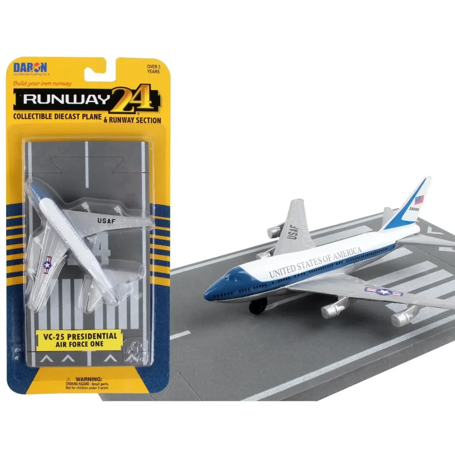 Runway24 toy aircraft by Daron (with Runway Section) are detailed, die-cast metal airplane toys that can be used together. Commercial, military and general aviation-style aircraft with real markings. Each die-cast aircraft comes with a flexible rubber runway section. These sections can be used together with other Runway24 sets or Hot Wings sets to create your own layout.