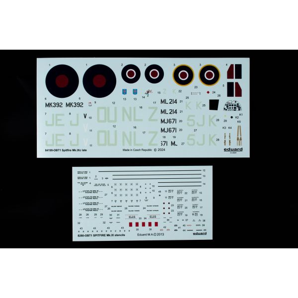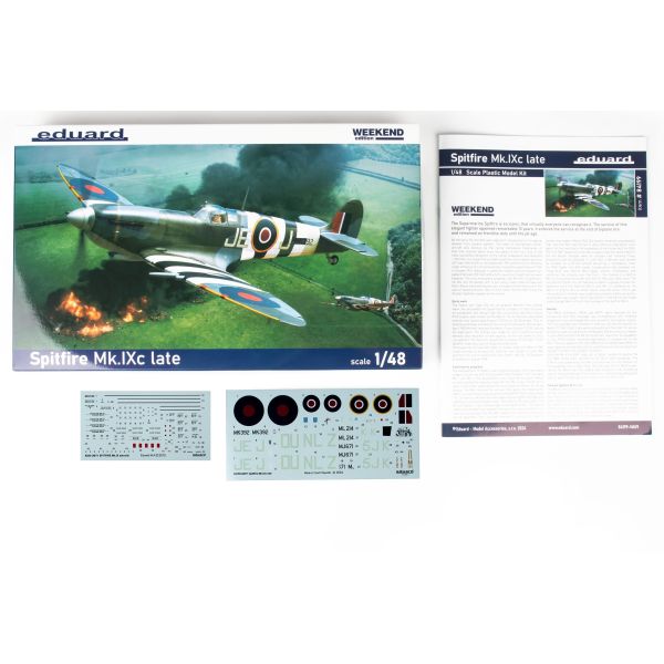 This is the Weekend edition kit from Eduard of the RAF Spitfire Mk.IXc late WWII fighter aircraft in the scale of 1:48