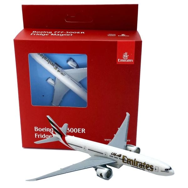 This Boeing 777-300ER Emirates magnet has a 14cm wingspan and is a stylish souvenir for all aviation lovers. This miniature magnetic model faithfully captures the form of the iconic airliner in service with Emirates and is designed for use on most metal surfaces, including refrigerators.