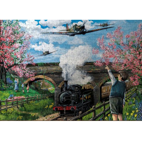 Leading the formation is the historic Spitfire Mk.1 “N3200,” flown by Squadron Leader Geoffrey Stephenson. This aircraft played a vital role in the Dunkirk evacuation before being damaged and buried on Sangatte beach in May 1940. Recovered in 1986 and restored at the Imperial War Museum Duxford, N3200 triumphantly returned to the skies in 2014. This puzzle is perfect for aviation enthusiasts, history lovers, and anyone who appreciates nostalgic British countryside scenes.