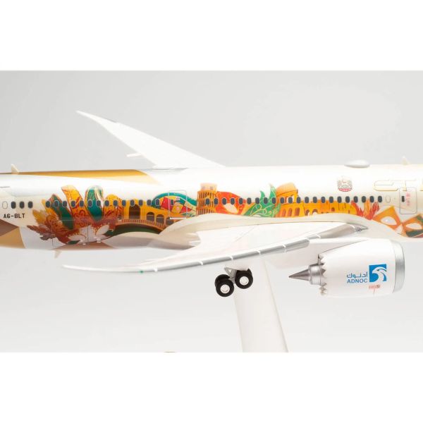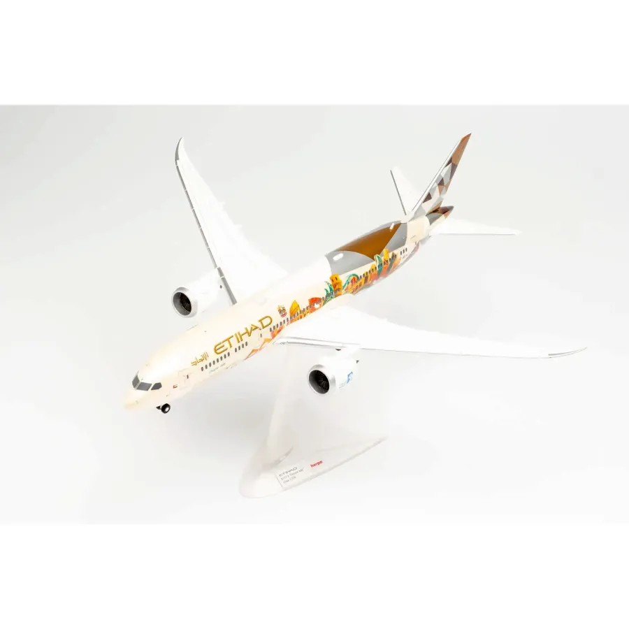 Herpa Wings Boeing 787-9 Etihad "Choose Italy" A6-BLT 1:200 scale model made of high-quality, durable plastic. The model is meticulously painted and pre-assembled. The wings are connected to the fuselage via a plug-in system; no glue is required for assembly.