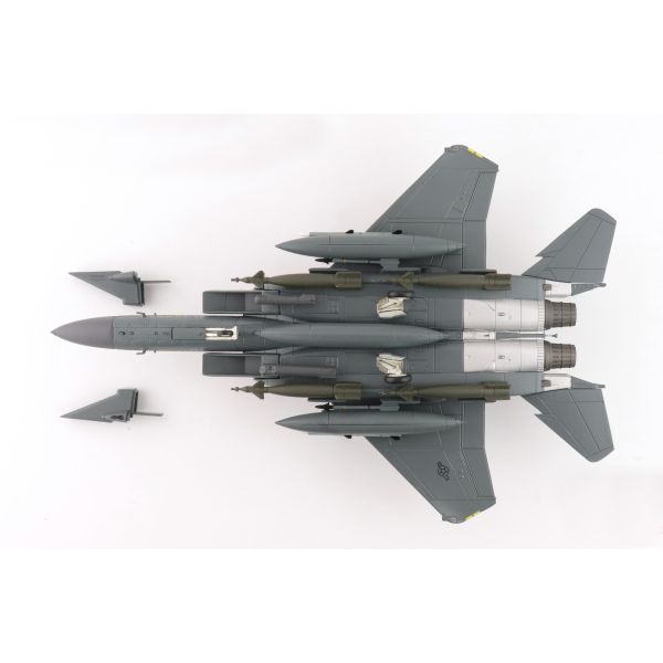 This is a 1/72 scale military scale diecast model from Hobbymaster of the F-15E Strike Eagle 88-0705, 90th FS CO Jet, August 2005. Comes with gear and stand in premium model box.