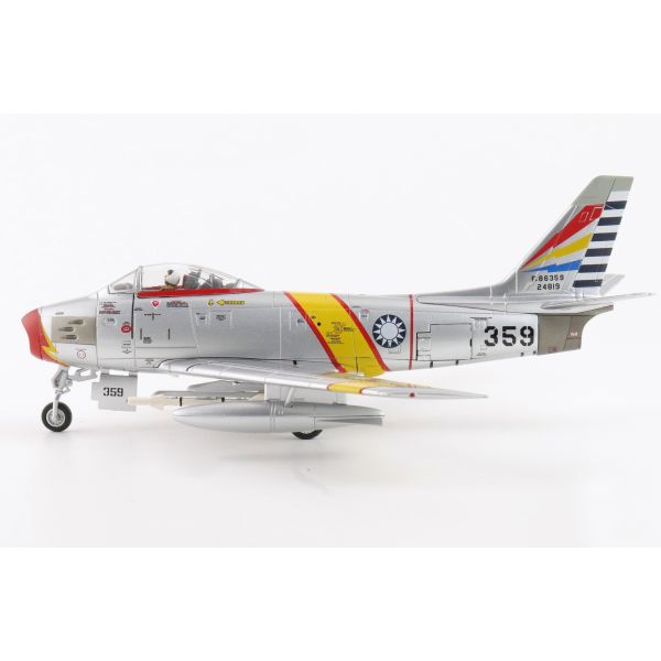 A 1/72 scale diecast model from Hobbymaster of the F-86 Sabre No.359, ROCAF, 24th Sept, 1958 Diecast - 1/72. Comes with gear and display stand.