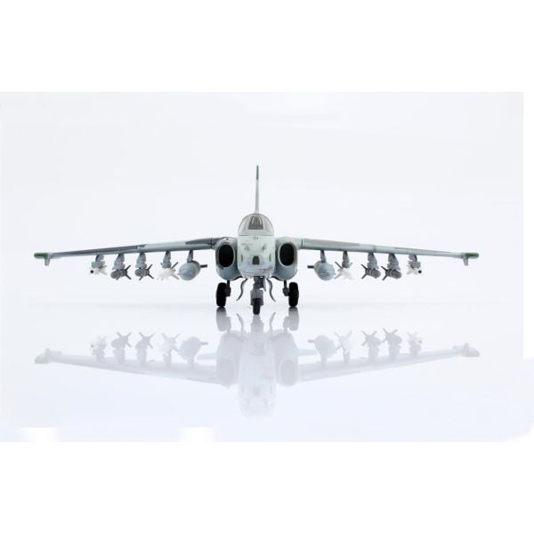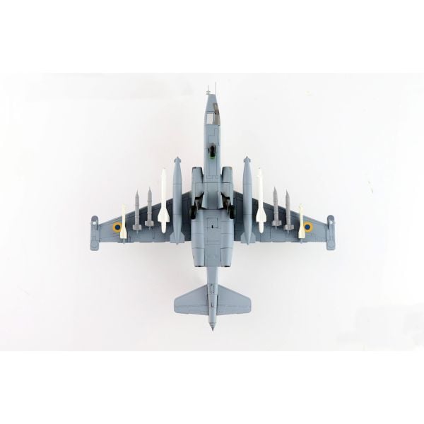 From Hobby Master this is a 1/72 scale diecast model is of the Su-25M1 "Lt. Col. Zhybrov "(low vis. scheme) Blue 19, 299th Tactical Aviation Brigade, Ukraine AF, Feb 2022 (w/2 x KH-25ML, 4 x S-24B). It comes boxed with landing gear and display stand.