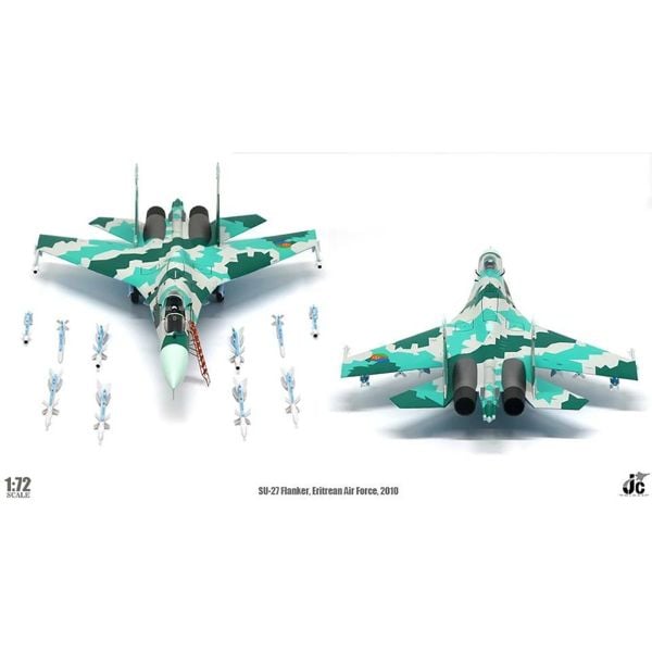 This is a 1:72 scale diecast scale model of the SU-27UB Flanker-C ERAF Eritrean Air Force Diecast