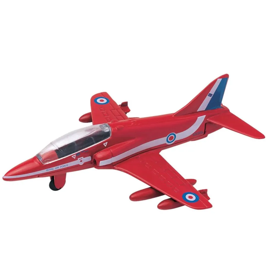 Red Arrows livery BAE Hawk Die-Cast aircraft model. Reproduced faithfully with authentic details. Packaged in a large diorama window box with collector's card and display stand.