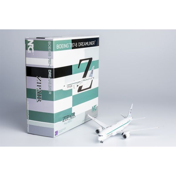 This is a 1/400 scale diecast model from NG Models of the Boeing 787-8 Dreamliner airliner in the ZIPAIR Tokyo livery - reg No. JA825J. It comes with landing gear and requires no assembly.