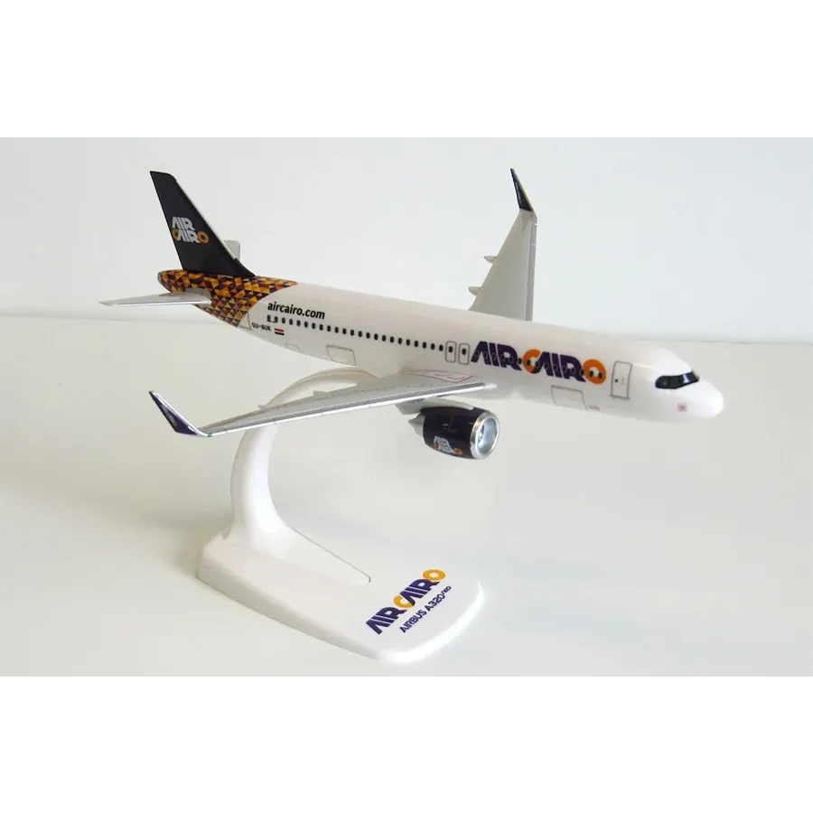 A plastic snap-to aircraft model, this is a 1:200 scale model of the A320 Neo with the Air Cairo Airlines livery.