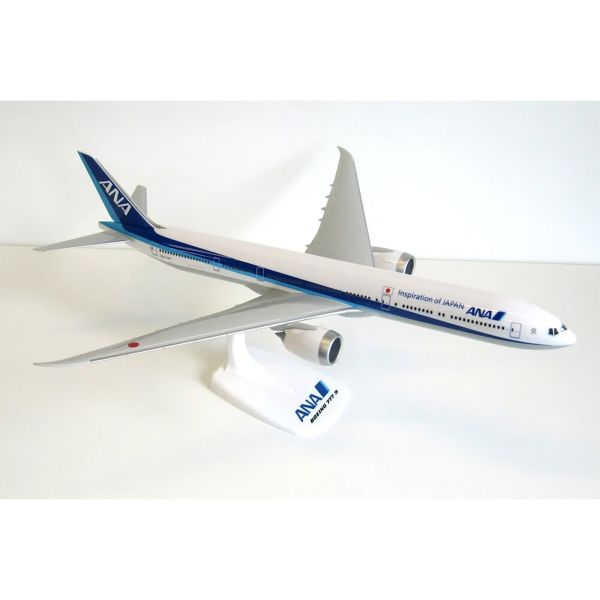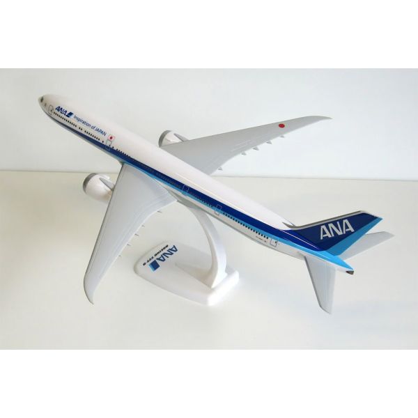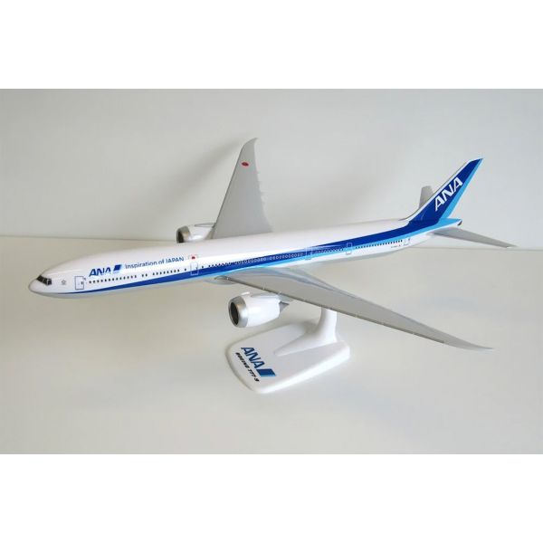 A plastic snap-to aircraft model, this is a 1:200 scale model of the Boeing 777-9X airliner with the ANA airlines livery. Comes with display stand
