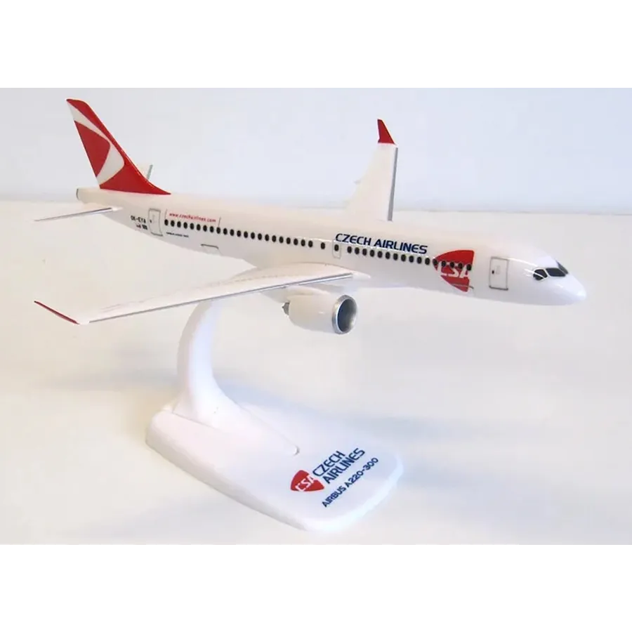 A plastic snap-to aircraft model, this is a 1:200 scale model of the Airbus A220-300 aircraft with the CSA Czech airlines livery. Comes with display stand.