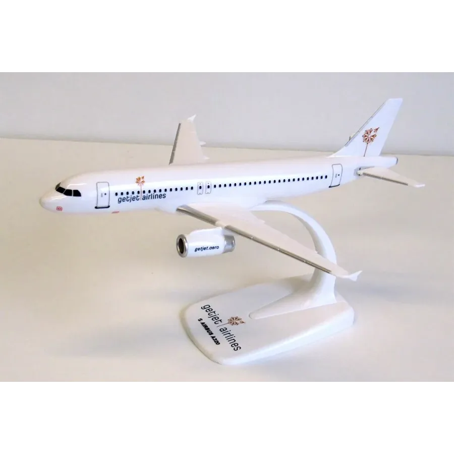 A plastic snap-to aircraft model, this is a 1:200 scale model of the Airbus A320 with the Getjet Airlines livery.