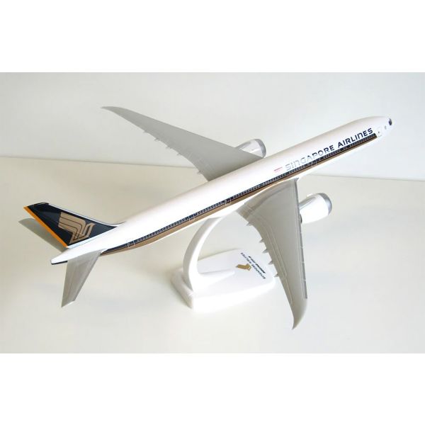 A plastic snap-to aircraft model, this is a 1:200 scale model of the Boeing 777-9X with the Singapore Airlines livery.