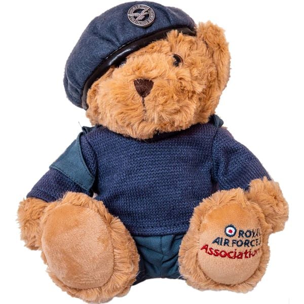 The Cadet Bear standing at 9" tall is dressed in working blues RAF air cadet uniform, with utility jumper, trousers, epaulettes, brassard and a beret with its air cadet badge correctly placed over its left eye. The RAF Association logo is embroidered on its left foot. It is the latest arrival in the RAF Association’s teddy collection, which has welcomed a new bear every year since 20