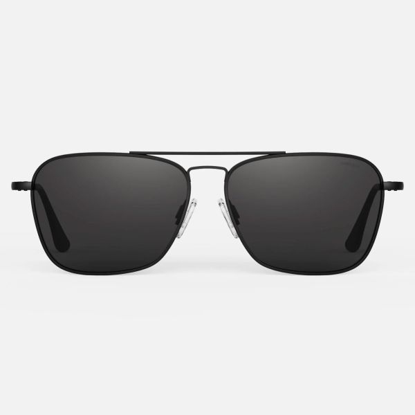 The Intruder, named after the A-6 Intruder, a twin-engine, mid-wing, all-weather attack aircraft. The large square shape brings out the boldest aviator characteristics while sitting close to the face. Handcrafted in the USA.