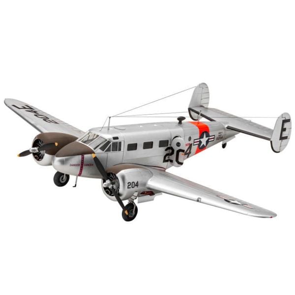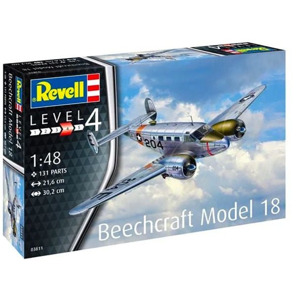 The Revell 1/48 Beechcraft Model 18 from our 1/48 scale aircraft model kits range accurately recreates a real-life American light aircraft. This plastic model kit requires paint and glue to complete. The Beechcraft Model 18 Twin Beech, Beech 18 for short, is a twin engined low wing monoplane built by the US manufacturer Beech Aircraft from 1937 to 1970.
