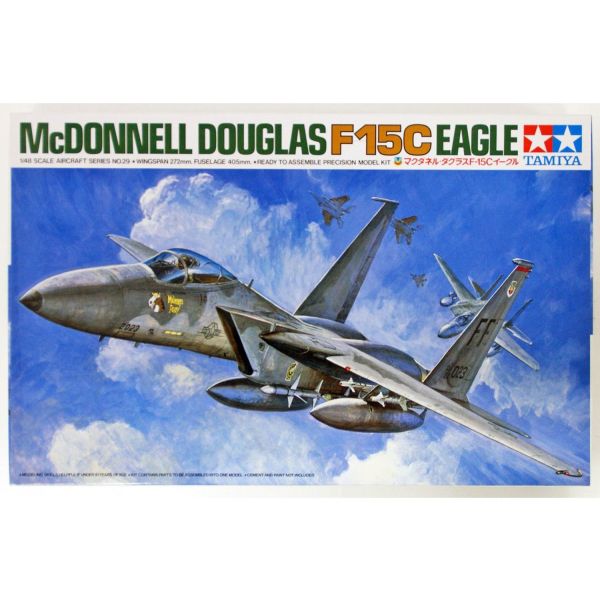 First deployed to units in 1979, the F-15C Eagle subsequently showcased its air superiority prowess during the 1991 Gulf War. This kit recreates this fighter complete with cockpit and radar details. The canopy may be assembled in either open or closed position, and the intakes may be assembled in either full-up or down positions. Metal landing gear legs, ample ordnance, one pilot figure, and three marking options are also included.