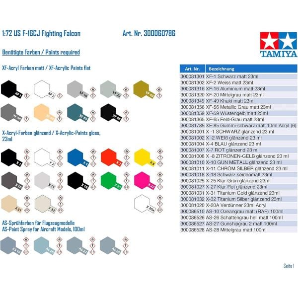 Tamiya F-16 CJ Fighting Falcon - Block 50 1:72 Plastic Kit